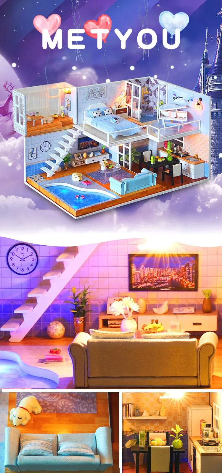 Photo shows finished dollhouse,but you receive are spare parts,build by yourself !