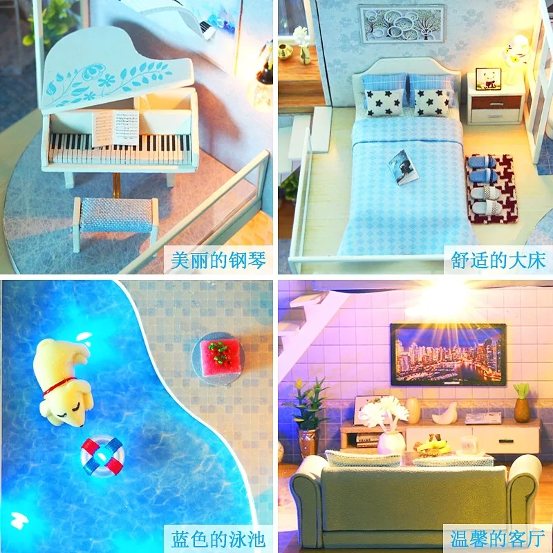DIY Building Blocks Dollhouse Wooden Toys Doll Houses Miniature Doll House Furniture Kit Casa Toys For Children